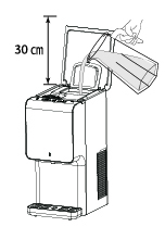 推奨は上面解放ですが、カバーの高さが26㎝程度のため、上面は最低30cm程度あけていただければ、フタの開閉や給水タンク、浄水フィルターの取り付け、取外しは可能です。
